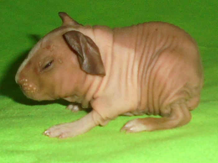 Tento vrh skončil tragicky. Samička prvnička porodila 2 samičky, hladkou a skinny. Bohužel vyhřezla jí děloha a samička uhynula se samečkem skinny v druhém děložním rohu.